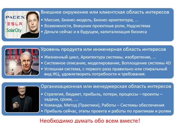 Нам необходима верхнеуровневая теория, которая сможет увязывать между собой разные картины мира. Такой фундаментальной теорией является трансдисциплина «системное мышление», а интеллект, в который загружена эта трансдисциплина, выдаёт функцию системного мышления. Благодаря такому поведению интеллекта непротиворечивым образом связываются между собой разные интересы ролей. Соответственно, в трансдисциплине «системное мышление» постулируется, что успешная система — это система, в которой учтены (а лучше удовлетворены) интересы всех заинтересованных проектных ролей.
