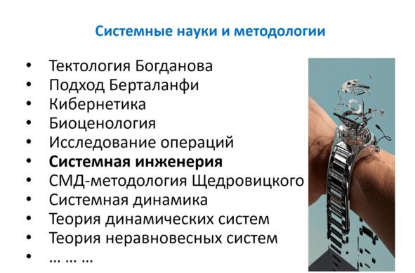 Понятия: системные науки и методологии, системный подход, системная инженерия, международные стандарты.