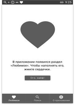 Идём дальше. Если в приложении появилось что-то полезное, не только исчезли ошибки, то при первом запуске сразу после обновления вы можете показать пользователям экран с рассказом о новинках. Или два, три экрана — насколько у вас хватит фантазии, а у пользователей — терпения: