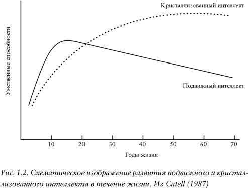 Подвижный интеллект более важен для успешного умственного функционирования в молодом возрасте, чем в пожилом. У детей корреляция между подвижным интеллектом и способностями к чтению и математике выше, чем таковая с кристаллизованным интеллектом. Напротив, в старшем возрасте эти способности демонстрируют большую корреляцию с уровнем кристаллизованного интеллекта. Этот момент будет очень важен в дальнейшем, когда я буду рассматривать некоторые причины относительно низкого IQ у людей более низкого социально-экономического положения и представителей некоторых меньшинств, а также ряд возможных способов повышения IQ.
