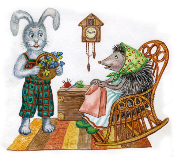 — Знаешь, что? Лучше ты поможешь мне так: не будешь помогать. А то я нечаянно пришью цветочек к твоему любопытному носу, — предупредила его ежиха.