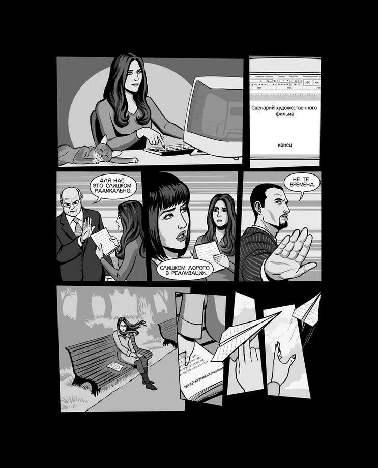 Этот сценарий попал в руки нескольким большим продюсерам. Однако они в один голос мне сказали: «Это классный сценарий, но я за такое не возьмусь». Этот же сценарий потом прочитал режиссер Петр Буслов (мы все его знаем как режиссера «Бумера»). К слову, до этого мы с Бусловым не были знакомы, нас познакомил мой сценарий – хорошая иллюстрация того, как случайно в кино происходят важные знакомства. И вот, спустя пару лет после того, как я впервые увидела «Эйфорию», я встречаю Буслова с Вырыпаевым. Петя представляет меня: «Вот, познакомься – у этой девочки есть классный сценарий, но ему не суждено воплотиться в жизнь».