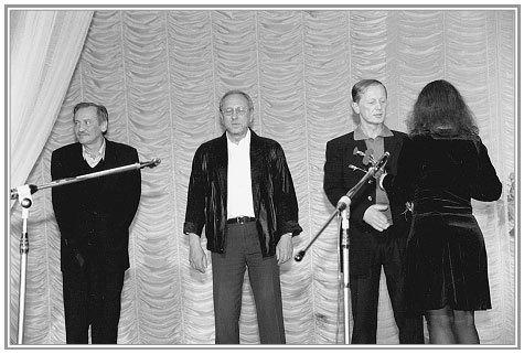 После всех неприятностей, случившихся с его здоровьем, Лёня совсем не рассчитывал когда-либо вновь появиться на сцене. Однако его удалось убедить в том, что это возможно. Так появился концерт под названием «На троих»: Л. Филатов, М. Задорнов и я. Мы постарались его построить в максимально комфортных для Лёни условиях. В самом начале М. Задорнов его представлял, и Лёня под долгие аплодисменты аудитории усаживался за журнальный столик, а затем читал что-то из недавно написанного (чаще всего «Лизистрату»). Примерно 20–30 минут. Потом уходил, провожаемый всё теми же овациями благодарной публики. Вслед за Лёней выходил я и, словно продолжая его теперь уже незримое присутствие на сцене, пел песни исключительно на его стихи. Так заканчивалось первое отделение, а всё второе брал на себя Михаил Задорнов, который и тогда был настолько популярен и любим публикой, что более длинная вторая часть концерта шла легко и радостно. И Лёне тоже было довольно легко в таком концерте участвовать