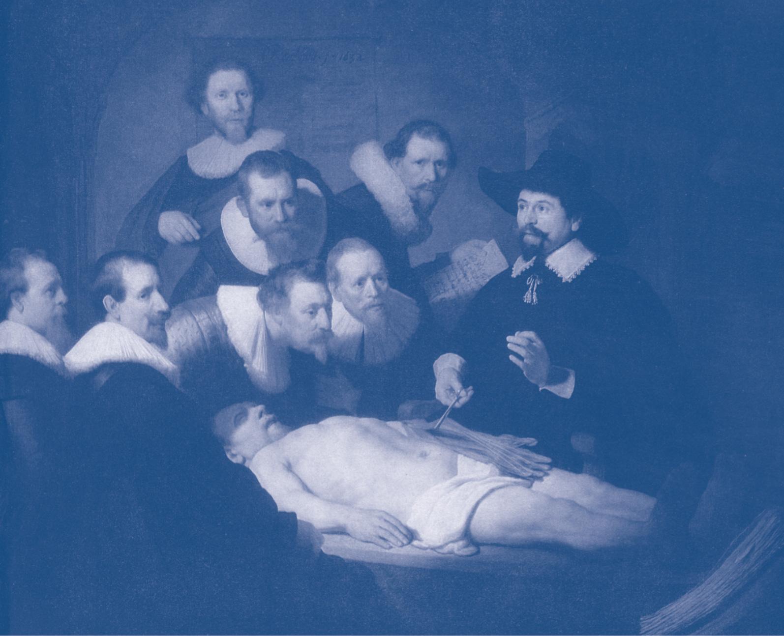 В 1632 году, когда Рембрандт ван Рейн написал картину «Урок анатомии доктора Тульпа», было крайне мало известно об анатомии, физиологии и морфологии человека. Медицина руководствовалась церковным учением, согласно которому человеческое тело считалось творением Бога. Преобладала древнегреческая гуморальная теория о четырех жидкостях в теле человека — крови, флегме (слизи), черной желчи и желтой желчи. Считалось, что болезни происходят из неравновесия этих четырех гуморов, и целью лечения, такого как кровопускание или вызов рвоты, было восстановление гуморальных жидкостей. Хирургические инструменты были примитивными, а то и попросту варварскими — дрель, пила, обычные щипцы и специальные зубные щипцы. Если мастер-хирург был недоступен, то оперировал больных и удалял зубы местный цирюльник. Хирург был скорее «художником», чем «ученым», — например, в отсутствие обезболивающих одним из важнейших навыков при проведении операции была скорость: на ампутацию ноги отводилось несколько минут. Новые знания об анатомии, физиологии, морфологии и медицине появлялись в лучшем случае очень медленно. Микроскоп уже изобрели, но он был слишком слабым, чтобы можно было увидеть бактерии, поэтому причины болезней оставались неизвестными — а значит, и методы их лечения практически не совершенствовались.