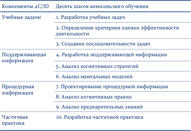 Таблица 1.1. Четыре основных компонента 4C/ID и десять шагов