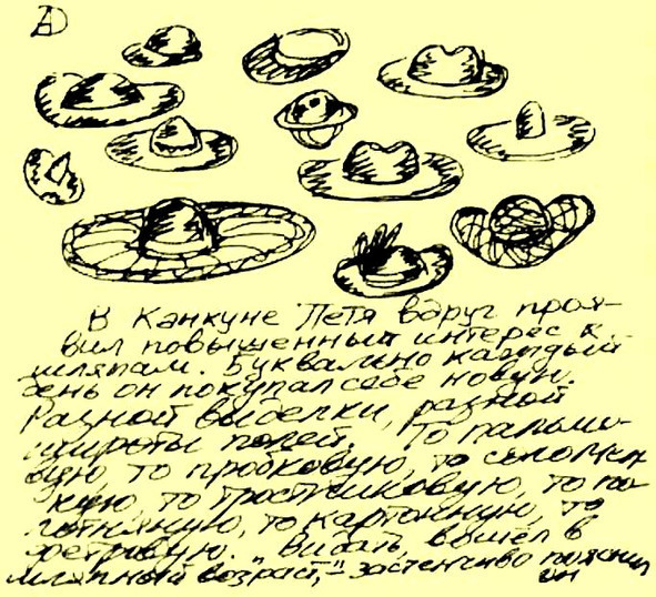 И впрямь, как шляпами, так и сандалиями Канкун был переполнен. От торговых центров, напоминавших то ли бисквитные торты, то ли океанские пароходы, до маленьких пальмовых лоточков на пляже — все было забито шляпами и сандалиями.