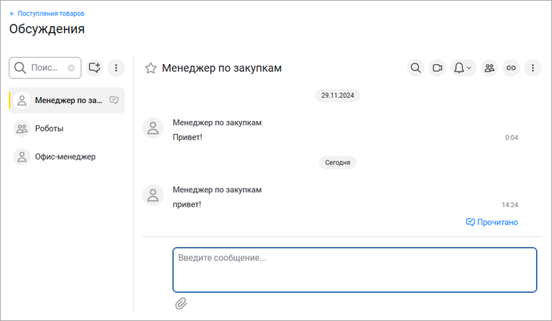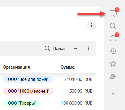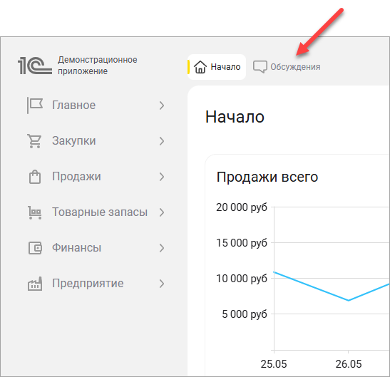 - Обсуждения (если информационная база подключена к серверу системы взаимодействия);