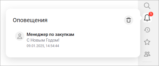 Оповещения пользователя (формируемые, например, системой взаимодействия) всплывают на несколько секунд рядом с иконкой оповещений