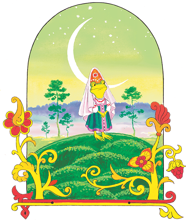 Вот поженились царевичи: старший на боярышне, средний на купеческой дочери, а Иван-царевич на лягуше-квакуше.