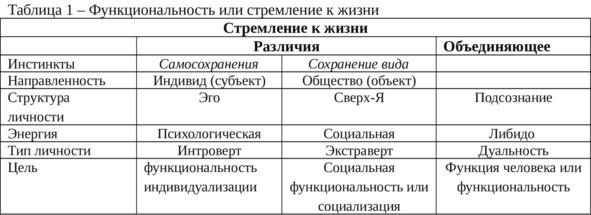 Функционализм подразумевает равенство этих стремлений, а при отсутствии одной из них или недостаточной удовлетворенности, происходит неисполнение человеческих функций. Функциональность мы видим, как стремление каждого человека к жизни и выполнению определенных полезных психических и социальных функций.