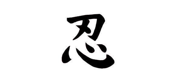 Существуют несколько интерпретаций иероглифа «синоби». Этот иероглиф по ону читается как «нин», и образует множество однокоренных слов. Иероглиф «нин» входит в состав слова «нинтай» («терпение»), выражающий важнейшую категорию буддийской аскезы. Так же как без терпения и отречения от своего «эго» невозможно достижение просветления, также без терпения и известной доли смирения невозможно постижение ниндзюцу. Такая интерпретация вполне естественна, так как буддизм оказал большое влияние на все стороны японской культуры. Так же, иероглиф «нин» означает и крайнюю степень опасности, в которой пребывает всякий вступивший на путь ниндзя, поэтому «сердце», в этом иероглифе, находится под «лезвием». «Нинтай», означает также «упорство» и «настойчивость», и трактуется так: «Хотя враг занёс клинок над сердцем ниндзя, он всё равно выстоит и одержит победу». Иероглиф «нин» входит, также в состав слов «синоби-дэ» (делать что-либо тайно, скрытно), «синобииру» (тайно проникать куда-либо) и проч. Суммируя всё выше сказанное, можно заключить, что синоби должен сохранять свою деятельность в тайне, а также это означает, что для приобретения навыков, позволяющих выполнять эту деятельность, необходимо тренироваться на пределе человеческих возможностей. Кроме того, при выполнении миссии синоби, нередко приходилось преодолевать такие трудности, какие только можно представить. Следующие путём синоби, должны были постоянно помнить об этом.