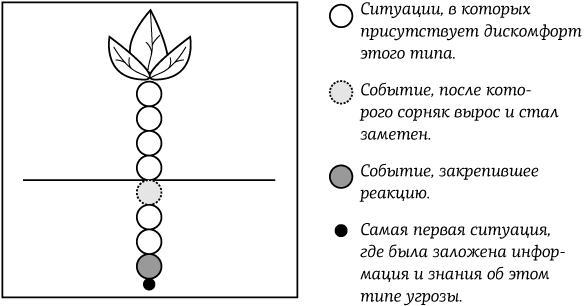 То же происходит и с телом в случае стресса, когда события в настоящем времени вызывают из глубин памяти ощущения из прошлого. И если взяться за эти ощущения, как за стебель сорняка, и потянуть – появится и корень, и зернышко, с которого все когда-то началось.