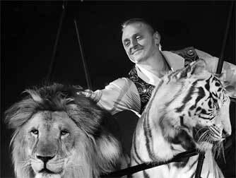 В то же время я вижу перед собой истинных профессионалов – они контролируют все пространство вокруг, постоянно следят за тем, чтобы у тигра или льва не зародилась даже мысль о нападении, пресекают все попытки лениться, валять дурака и проявлять реальную агрессию. Мне кажется, в такие моменты лучше всего снимать о братьях документальное кино – пружинящие движения, жесткие взгляды, резкие команды. Человек и зверь становятся братьями – но с сохранением иерархии. Человек уподобляется зверю, чтобы показать: «Я такой же, как ты, только сильнее. Слушай меня, ибо я – твой вожак!» И, как истинный вожак, он защищает слабых и осаживает сильных.