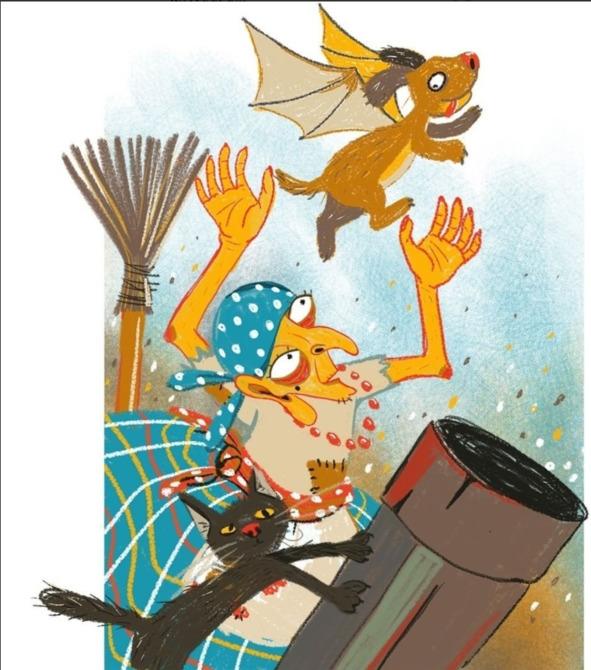 В домике том много было травок, грибов сушеных, варенья, меда. Наелся Квакахрям меда, сухим яблочком закусил, водичкой запил и спать под лавку улегся. А домик-то не домиком оказался, а избушкой Бабы-яги. Жила она там с дочкой Нюшей. Вот вернулись они вечером, а Нюша и начала ныть: «Пирогов хочу!» Баба-яга повела носом по избе да к лавке, под которой Квакахрям прятался, и подошла. Сказала: «Будет тебе пирог с Квакахрямом!»