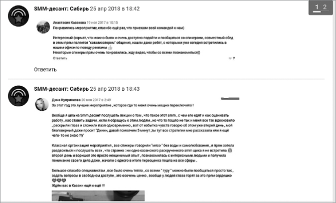 Отзыв может быть в виде репоста с личной страницы клиента или в виде текста с активной ссылкой на его личную страницу (рис. 19).