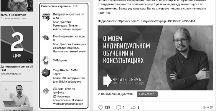 Кому еще подходит позиционирование по интересам? Сервисам, которые решают какую-то задачу в рамках определенного интереса. Типичный пример: сервисы ретаргетинга в ВКонтакте, которые объединяют вокруг своего сообщества таргетологов и предпринимателей. Проектам, которые хотят зарабатывать на рекламе. Например, сообщества «Детская Москва» или «Детский Петербург» созданы для того, чтобы продавать рекламу аудитории молодых мам. Однако повторюсь: этот вид бизнеса в мы не рассматриваем в данной книге из-за его специфики.