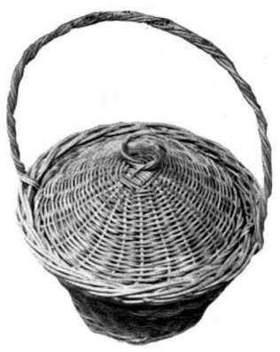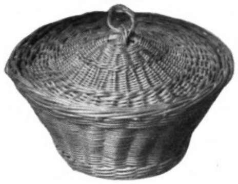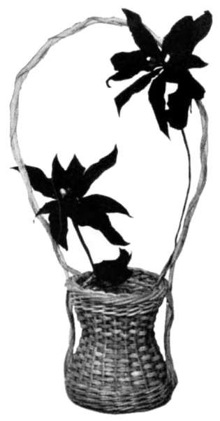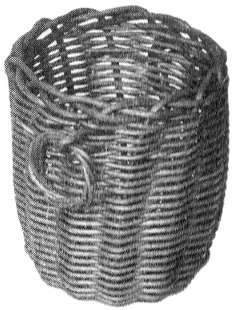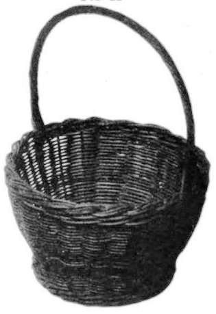 The entire basket may be made first, and then either dipped, allowed to stand in the dye a few minutes, or boiled five to thirty minutes; it may be painted with Easy dye, stained with any desirable furniture stain, varnished and waxed up. The basket may be finished off by using either fine sandpaper, or powdered pumice stone, but in finishing colored baskets, it will be found that singeing will be the most successful method.