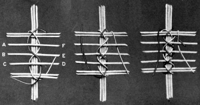 Leave an open space of two inches. Weave three rows of pairing. Number the groups 1, 2, 3, 4, 5.