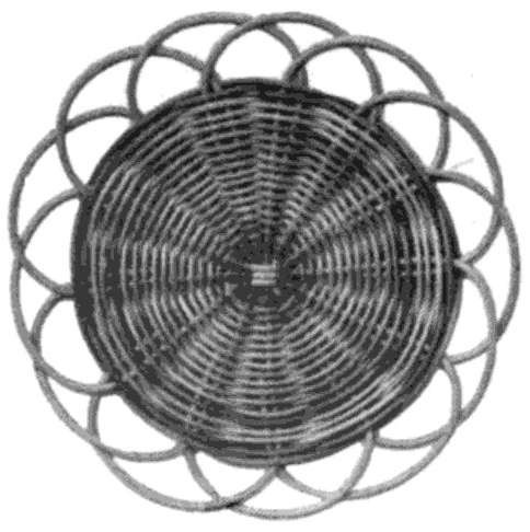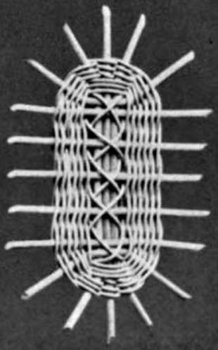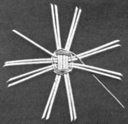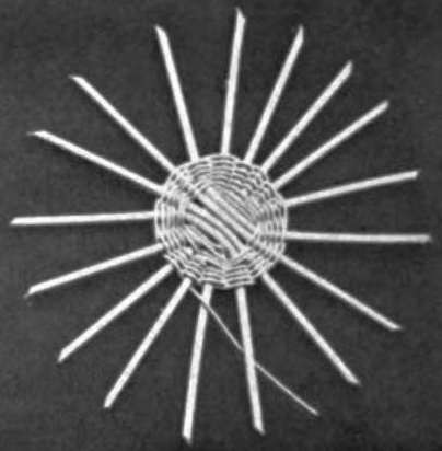 Do not cut any of the spokes off. Make a plaited border with the double spokes. The spokes should be held slantingly outward, while weaving, to obtain the desired shape.