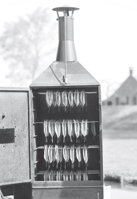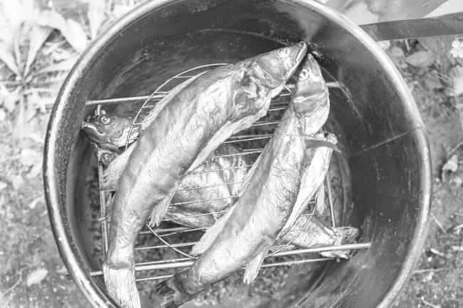 Например, на обрывистом берегу. Иллюстрацию такой коптильни можно увидеть на форзаце в начале этой книги (рис. 2). Вместо трубы в данной конструкции используется небольшая траншея, вырытая в земле. Дым от щепы по траншее направляется в коптильную камеру, изготовленную из каркаса, на который натянута обыкновенная ткань или брезент. Непосредственно перед процессом копчения ткань следует намочить обыкновенной водой. В такой коптильне интенсивность подачи дыма и температура напрямую зависят от длины, ширины и глубины траншеи, по которой дым подается в коптилку. Коптильню холодного копчения можно изготовить из подручных материалов непосредственно на месте вашего отдыха.