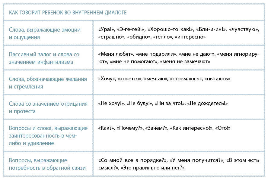 Таблица 5. Голос архетипа ребенка во внутреннем диалоге