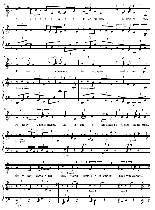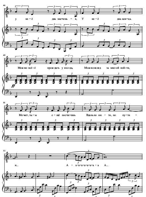 Следом начинается второй куплет песни, вместе с первой частью припева повторяющий начальный раздел. Но в 48 такте меняется настроение, наступает кульминационный момент. Голос Насти становится более твёрдым и даже жёстким, в сопровождении звучат плотные аккорды, динамика вырастает до фортиссимо. Это крик отчаяния и надежды героини, который подхватывает саксофон Алексея Могилевского и своим импровизационным соло снимает напряжение.