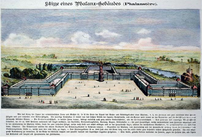 Общий вид здания Фаланги (Фаланстера). Середина XIX века. Гравюра