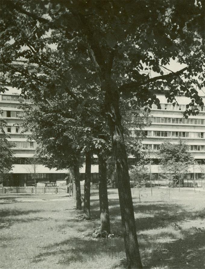 Вид восточного фасада от коммунального корпуса. Фото А. Александрова. 1963. Музей архитектуры им. А.В. Щусева