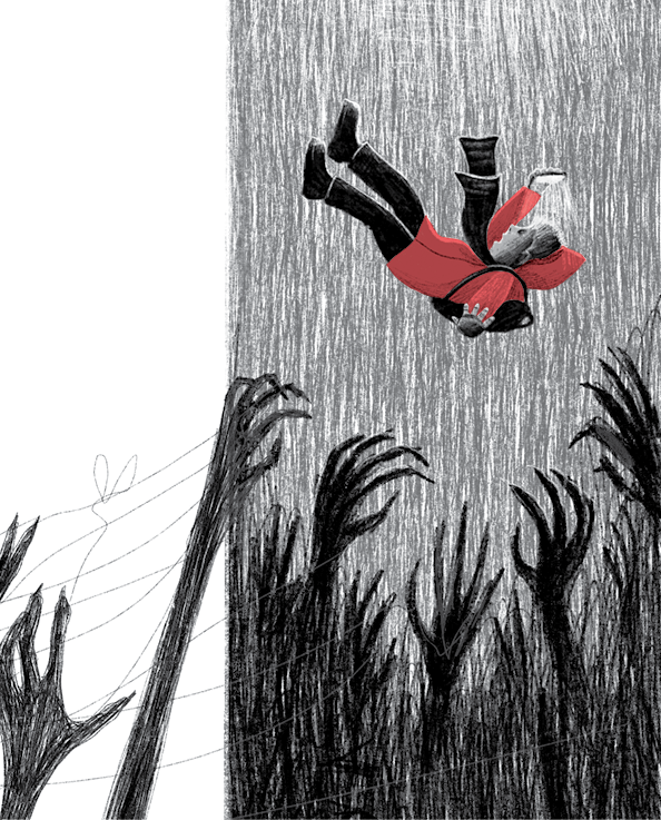 Обернулся мальчик вокруг — и даже крик у него в горле застрял. Стена оказалась круглой, как в колодце. А руки со всех сторон тянутся и окружают.