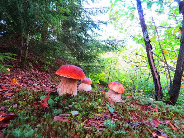 Наш российский народ обожает грибы! В осенний сезон армии грибников едут в лес из больших городов или же идут из сельской местности. Грибы привлекают и завораживают. Какую бурную радость мы испытываем, найдя в лесу всеми нами любимый белый гриб или же подосиновик, подберезовик! У нас возникает праздничное настроение, хочется петь и смеяться. А еще мы испытываем азарт, нам хочется найти еще несколько таких же красавцев! Неописуем тот восторг, который испытала школьница, нашедшая сразу двенадцать замечательных коренастых белых грибков, всего лишь приподняв густую еловую ветку. В результате она была вознаграждена воспоминаниями на всю жизнь! Эти грибы вы увидите на одной из фотографий. Такова наша замечательная российская природа! У нас много уникальных лесов, где вы можете собирать эти замечательные дары природы. Особенно много грибов растет в еловых лесах и в смешанных лесах с елями. В этих лесах наблюдается симбиоз грибов с корнями еловых деревьев, или с их стволами. Симбиоз означает, что грибы получают полезные вещества из елей, и не могут без этого обойтись. Именно поэтому невозможно выращивать, например, белые грибы и подосиновики грядками, так как нет такого симбиоза. Еловые леса обладают еще одним исключительно важным преимуществом. Опадающие иголки и шишки от елок образуют удивительно полезную пышную почвенную прослойку, на которой быстро растут многие виды грибов, например, рыжики и польские грибы. Различные виды белых грибов — частые гости в этой местности.