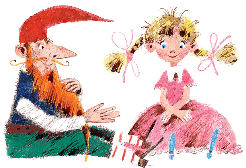 – У нас творятся зловещие вещи, – сказал гном. – Теперь понятно? Может случиться большая беда. Ни один взрослый нам не поверит. Нам рассказала про тебя Красная Шапочка. Она видела фильм о тебе по телевизору. Она сказала, что ты нам поможешь.