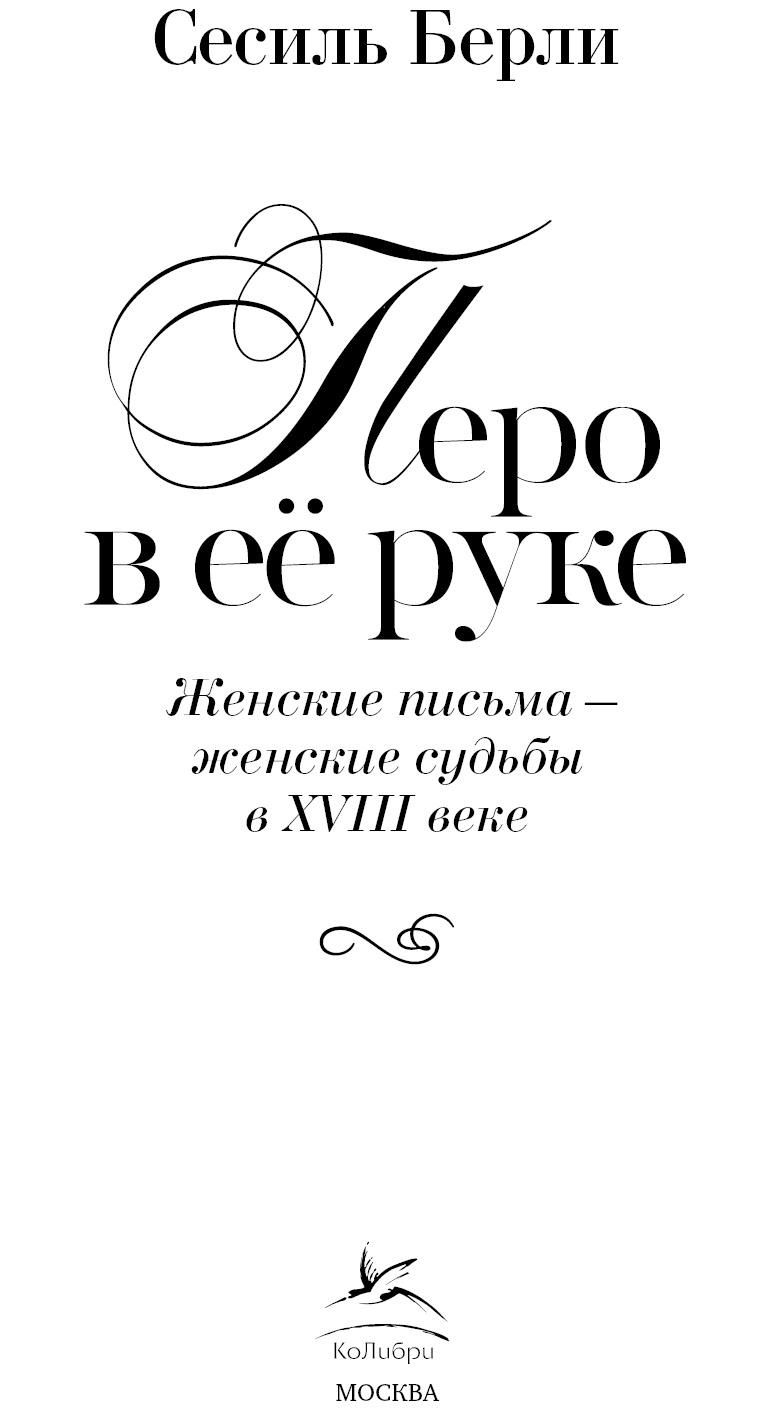 Перо в её руке : Женские письма — женские судьбы в XVIII веке / Сесиль Берли ; [пер. с фр. О. А. Михайловой]. — М. : КоЛибри, Азбука-Аттикус, 2025.