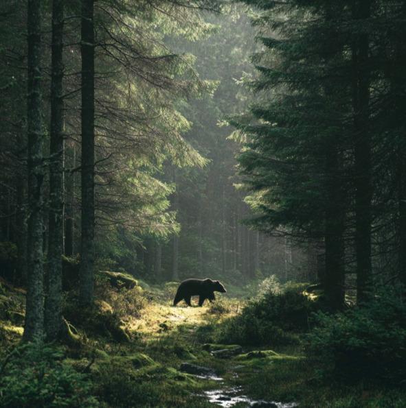 In a dense old forest lived a bear. One day, while walking, he drank cold water from a mossy well and went down the path to a