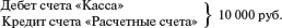 | По приходному кассовому ордеру № 1 | «Касса» | «Расчетные счета» | 10 000 |