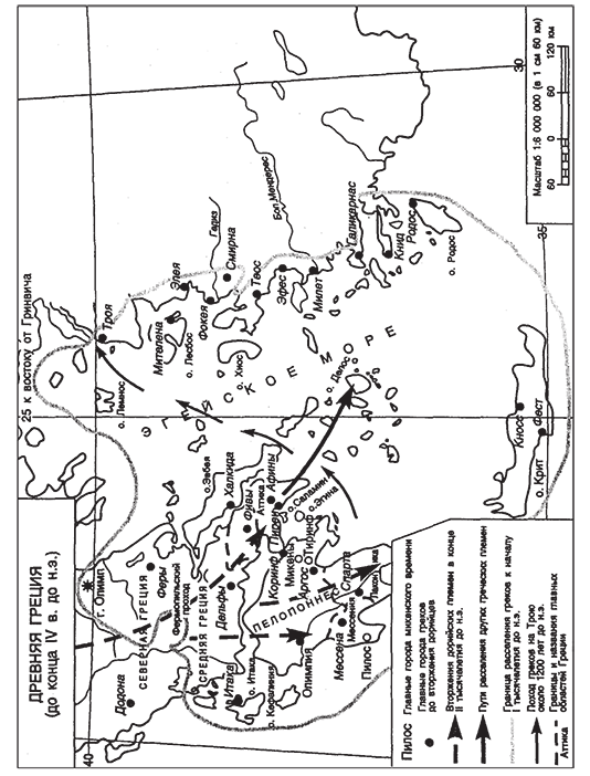 По данным современной науки, первые государственные образования на территории Балканского полуострова были известны уже в середине 3-го тысячелетия до н. э. Раньше классовое общество и государственная организация сложились на острове Крит и в Микенах. Поэтому период создания первых государств в Греции называют крито-микенской цивилизацией. Порядок управления на Крите и в Микенах напоминал восточные государства: теократия, дворцовая система управления. Конец крито-микенской цивилизации был положен приходом на юг Греции с севера племен дорийцев. В результате на всей территории Греции вновь устанавливаются первобытно-общинные отношения, после разложения которых в истории Греции начинается новый этап: формирование и расцвет полисов, рабовладельческих отношений классического типа. Полисный этап истории Древней Греции делится на три периода: