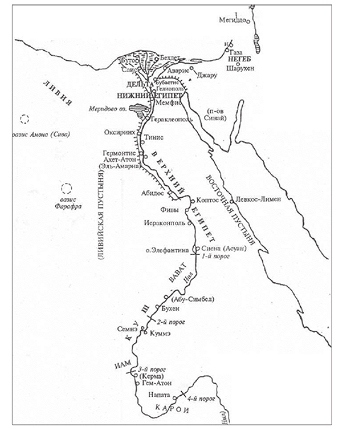 Ко времени образования единого египетского царства на его территории было примерно 40 отдельных областей — номов, во главе которых стояли правители — номархи. Номархи пытались распространить свою власть над всей страной, ведя ожесточенные войны со своими соседями. Первоначально номы объединились в два самостоятельных государства — Верхний Египет и Нижний Египет. Первое объединение Египта произошло в период Раннего царства и было осуществлено фараоном Менесом. История древнеегипетского государства делится на несколько периодов: Раннее, Древнее, Среднее, Новое и Позднее царства.
