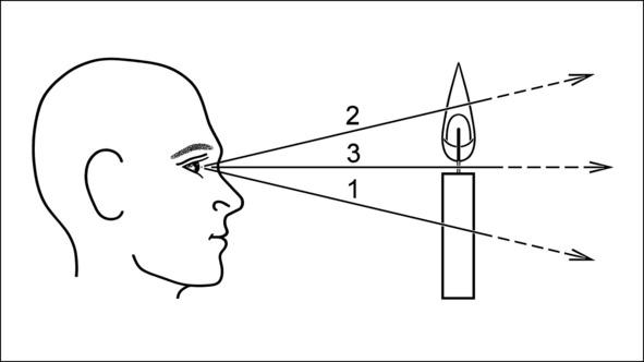 3. Смотреть сквозь тело свечи (зону («объем»), выбранную вами для ЭИ-видения) расфокусированным, «блуждающим» взглядом (рис. 1; 2).