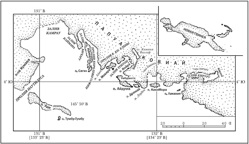 Между многочисленными островами Тихого океана острова Меланезии менее известны, чем остальные, хотя и представляют большой научный интерес, и между последними Новая Гвинея по своей величине[1] и по своей неизвестности играет первую роль.[2]
