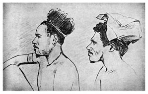 1 мая. Рисовал два интересных типа женщин, а также смесь серамцев с папуасами. Отправился в 4 часа в Серам-Лаут. Достал череп серамца.