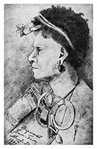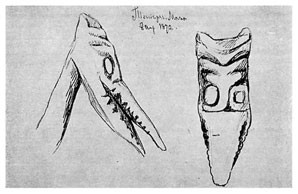 2) Нос очень изменяет форму вследствие пробуравливания носовой перегородки (костью рыбы или иглою), представ[ляется] очень плоским, с висячим куском мяса.