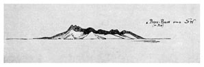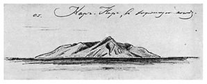 28 <мая>. В 5 часов снялись с якоря. Проходя гору Апи, кратер был ясно виден в виде отверстия на западном склоне. Он был окружен темноватым краем. Подойти к нему, кажется, невозможно и с вершины вряд ли можно смотреть в кратер.