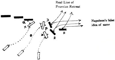 The left or eastern half, formed mainly of Prussian subjects, and acting under Blucher, had arrived from the east, looked for safety in case of defeat to a retreat towards the Rhine, obtained its supplies from that direction, and in general was fed from the east along those communications, continual activity along which are as necessary to the life of an army as the uninterrupted working of the air-tube is necessary to the life of a diver.
