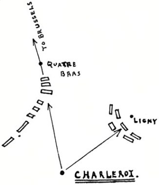 Napoleon, then, in his rapid advance upon Belgium, was a man conducting a column against a line. He was conducting that column against one special point, the point of junction between two disparate halves of an opposing line. He advanced therefore upon a narrow front perpendicular to, and aimed at the centre of, the long scattered cordon of his double enemy, which cordon it was his business if possible to divide just where the western end of one half touched the eastern end of the other. He designed to fight in detail the first portion he could engage, then to turn upon the other, and thus to defeat both singly and in turn.
