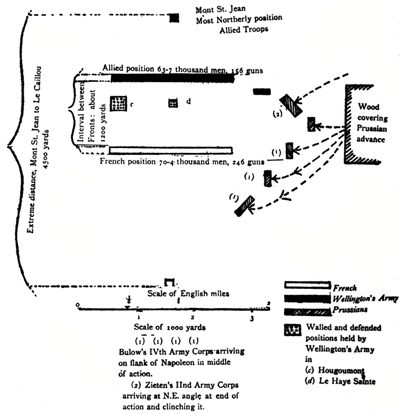 With Waterloo it was not so. Waterloo was lost by Napoleon, won by the Allies, not mainly on account of tactical movements upon the field itself, but mainly on account of what had happened in the course of the advance of the French army to that field. In other words, the military character of that great decisive action is always missed by those who have read it isolated from the movements immediately preceding it.