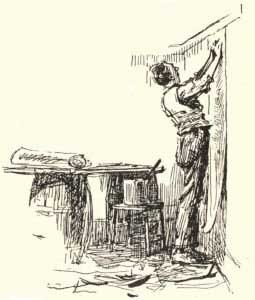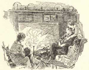 We climbed down rather silently. I felt a tendency to step softly, for fear of waking something. The big key fitted the back door, and we followed Mr. Westbury. He told us, as we entered, that the place belonged to his wife and her sister—that they had been born there; also, their father, their grandmother, and their great-grandfather, which was as far back as they knew, though the house had always been in the family. Through a little hallway we entered a square room of considerable size. It had doors opening into two smaller rooms, and to one much larger—long and low, so low that, being a tall person, my hair brushed the plaster. Just in the corner where we entered there was an astonishingly big fireplace to which Mr. Westbury waved a sort of salute.