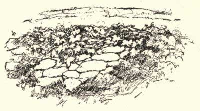 I could feel my pulse getting quicker. There was no widely extended view, but there was a snug coziness about these neighborly meadows and wooded slopes, with the brook winding between; this friendly road with its ancient stone walls, all but concealed now by a mass of ferns or brake on one side, and on the other by a tangle of tall grass, goldenrod, purple-plumed Joe Pye weed, wild grape with big mellowing clusters, wild clematis in full bloom. New England in summer-time! What other land is like it? Our brook, our farm, here in the land of our fathers! There were a warmth, a glow, a poetry in the thought that cannot be put down in words—something to us new and wonderful, yet as old as human wandering and return.
