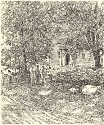 We wondered if the house we were going to see would be like this one. It was of no special design and it had never had a period. It was just a house, built out of some one's urgent need and a lean purse. In the fifty years or so of its existence it had warped and lurched and become sway-backed and old—oh, so old and dilapidated—without becoming in the least antique, but just dismal and disreputable—a veritable pariah of architecture. We thought this too bad, for the situation, with its view down a little valley and in the distance the hazy hills, was the sort of thing that, common as it is in Connecticut, never loses its charm. Never mind, we said, perhaps "our house" would have a view, too.