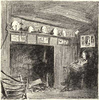 There was no question as to that. The opening, which included a Dutch oven, was fully seven feet wide, and the chimney-breast no less than ten. The long, narrow mantel-shelf was scarcely a foot below the ceiling. It took our breath a little—it was so much better than anything we had hoped for. We forgot that this was a haunted house. It had become all at once a sort of a dream house in which mentally we began placing all the ancient furnishings we had been gathering since our far-off van-dwelling days. There was a big hole in the plaster, but it was a small matter. We hardly saw it. What we saw was the long, low room, with its wide wainscoting and quaint double windows, and ranged about its walls—restored and tinted down to match—our low bookshelves; on the old oak floor were our mellow rugs, and here and there tables and desk and couches, with deep easy-chairs gathered about a wide open fire of logs. Oh, there is nothing more precious in this world than the dream of a possibility like that, when one is still young enough, and strong enough to make it come true!