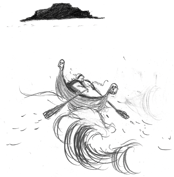 И вот через пролив под названием Теснина Героев к большой земле Душегубских гор плывет одинокая лодка. Лодкой правит человек огромного роста — Перевозчик.