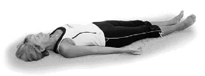 1. Лежа в позе Шавасана (рис. рис. далее), с медленным вдохом поднять прямые руки вверх и медленно опустить их на пол за головой.